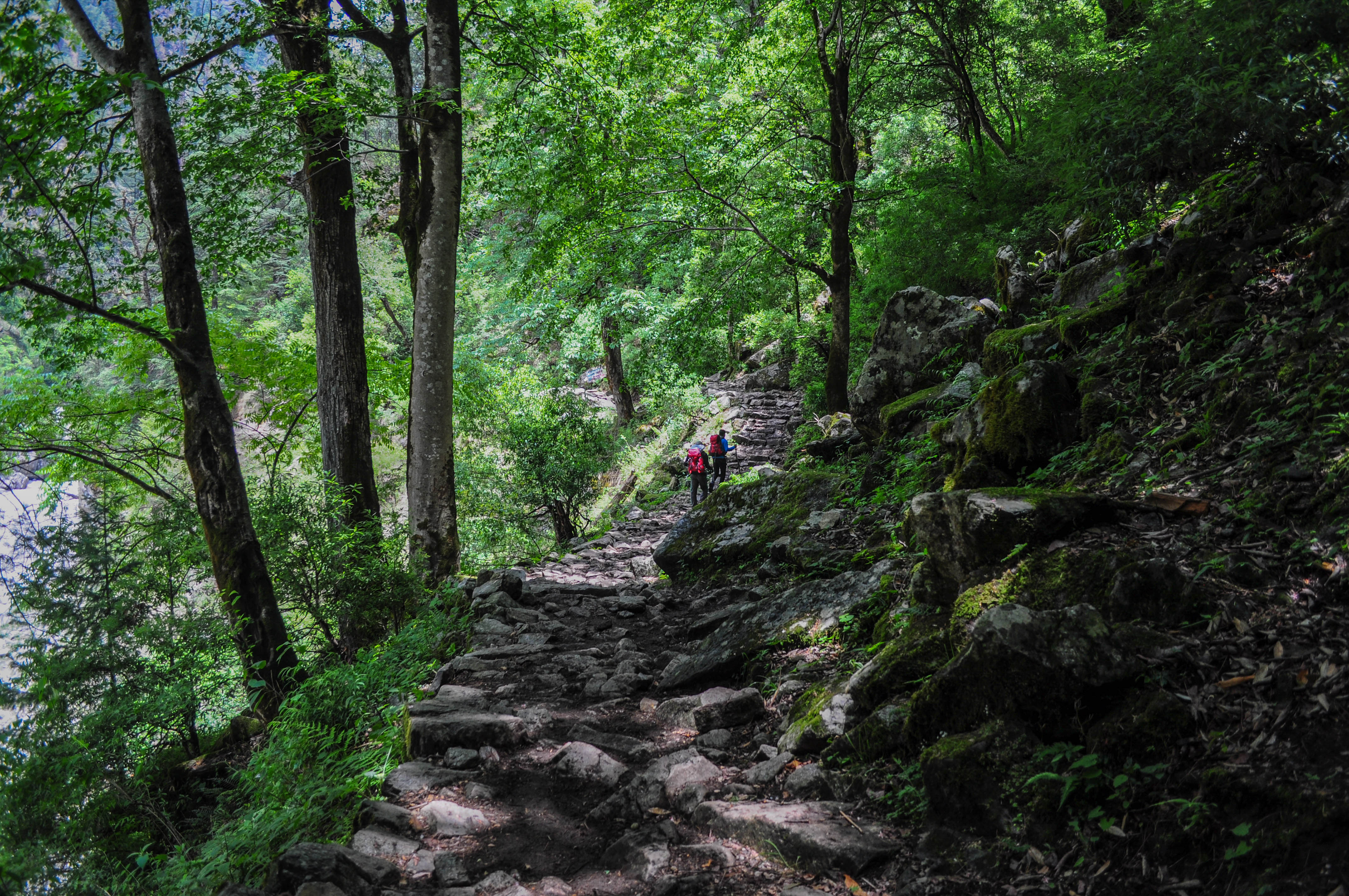 We started early at 8:20 just after breakfast. The light beams through the high mountains kept us motivated. The gradient was like the last day. Still, the loose earth patches in between kept us reminded that it was not the same day or altitude anymore. Some mountain goats were standing higher than us on a loose section. They kept kicking rocks down. This made it more challenging. The route continued along the gorge with the river lying deep down.